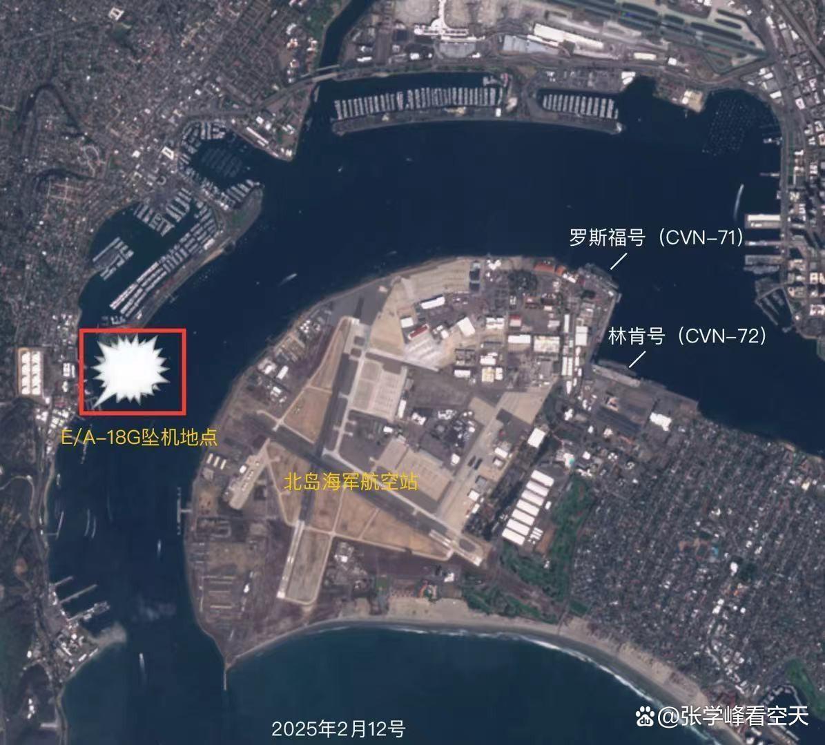 这架“咆哮者”的坠机地点位于北岛海军航空站西侧的海湾内,几公里外的泊位上,就停靠着罗斯福号(CVN-71)和林肯号(CVN-72)这两艘核动力航母。事实上圣迭戈海军基地是美国海军在西海岸最大最重要的基地,有多艘航母都以此为母港,无论是航母泊位被砸了,还是北岛海军航空站被炸了,都会严重影响美军航母在印太地区的活动。