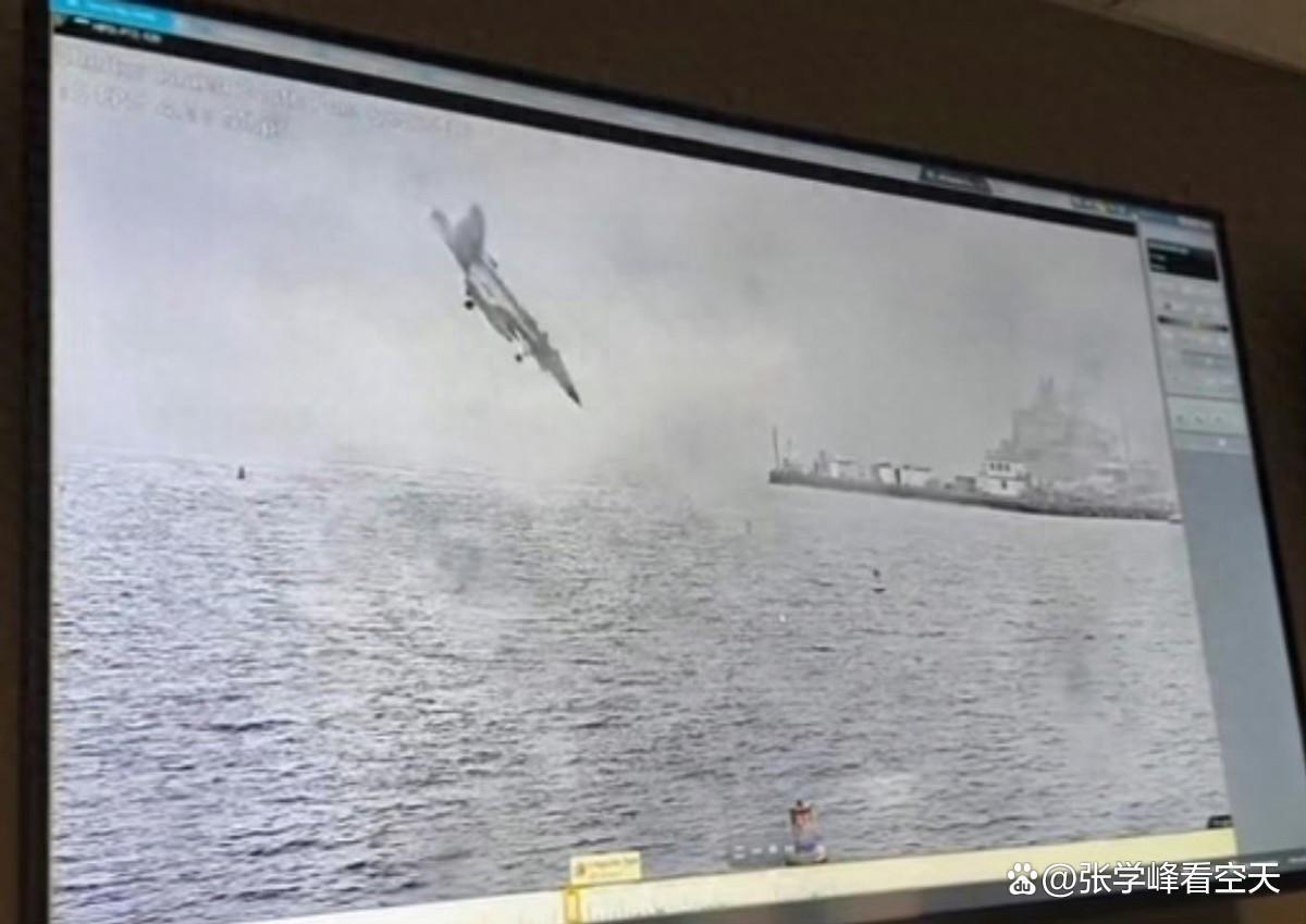 (监控拍到“咆哮者”坠海前的瞬间,此时两名飞行员已经弹射逃生)
